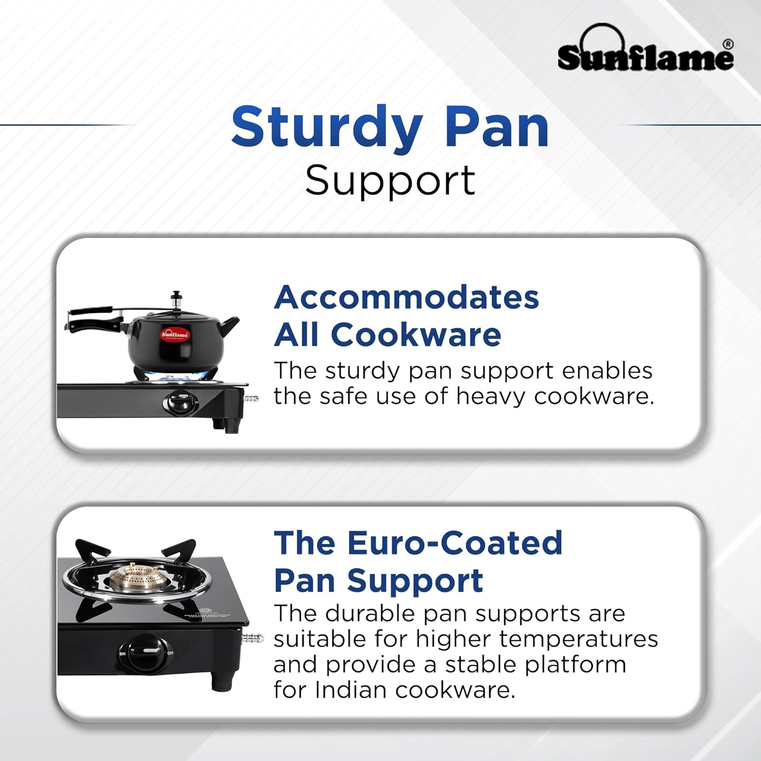 Sunflame Maleo 2 Burner Gas Stove | 1 Medium & 1 Small Brass Burners | 2 Year Product Coverage