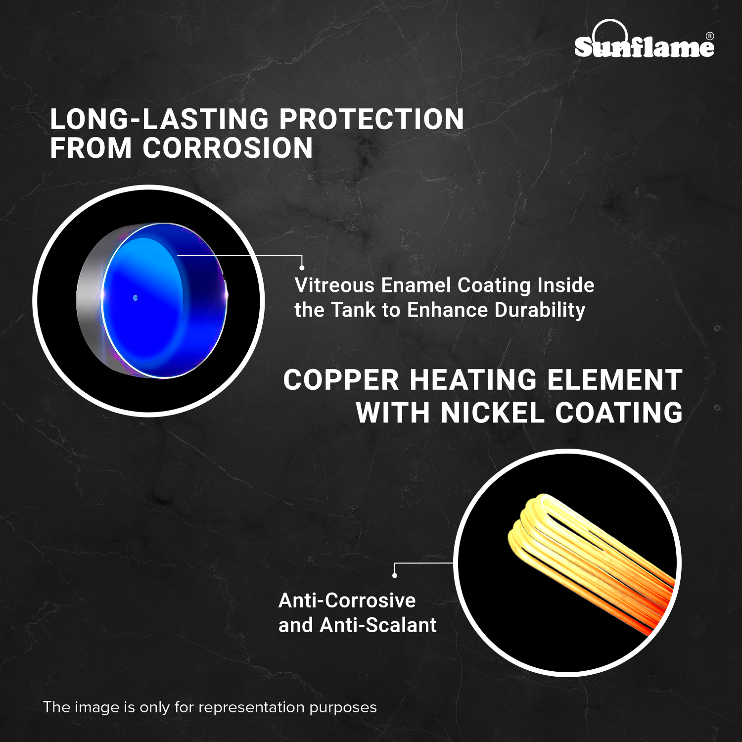 Your wait for the perfect hot shower ends here. Sunflame brings to you Roilg N Water Heaters, which offer long-lasting durability, ultimate safety, higher energy savings, and give your bathroom a classy distinctive touch. Its high density PUF insulation maximizes heat retention and ensures that the water inside the tank remains heated for a longer duration, thereby bringing down energy consumption and saving money. Its ability to withstand water pressure up to 8 bar also makes it an ideal choice for people residing in high-rise buildings or using pressure pumps. Built with state-of-the-art features such as Vitreous Enamel Coating, Magnesium Sacrificial Anode, highly superior Anti-rust Incoloy 800 Heating Element, and Single Weld Line Design, Sunflame's Rolig works well even with hard water and offers increased and prolonged resistance to rust, corrosion, and leakage. This makes the water heater last long and consistently deliver the same superior performance for years. It also safeguards against damages resulting from overheating, pressure build-up and vacuum formation with its host of pre-emptive safety features like the thermostat, thermal cut-off and pressure release valve. With four capacity variants of 10L, 15L and 25L, this vertical storage water heater comes with a highly convenient temperature control knob and stylish neon indicators for power and heating status.