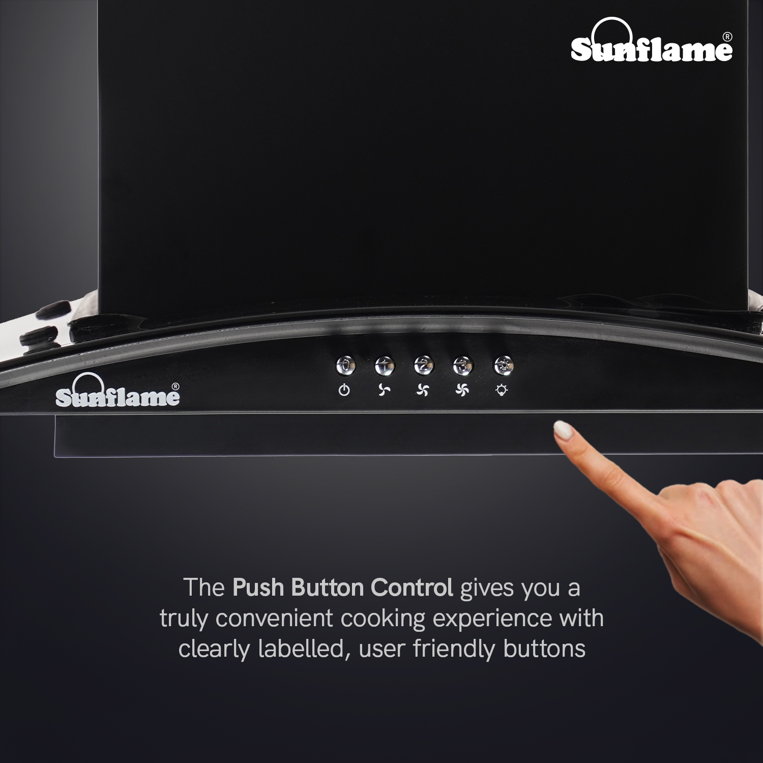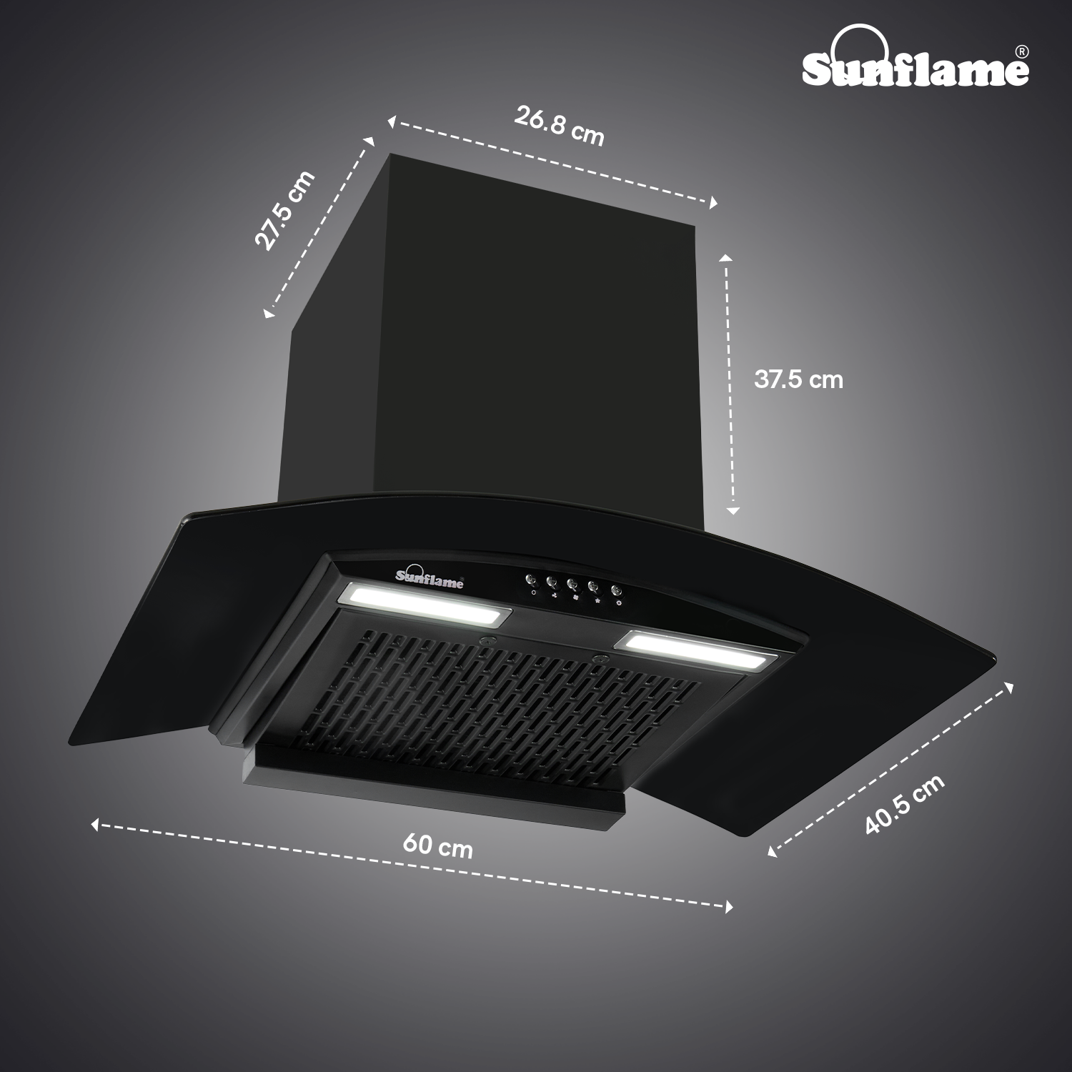 Sunflame Naples 60 cm Filterless Chimney | 1100 m³/h High Suction Capacity | 2-Year Product and 8-Year Motor Coverage by Sunflame | Push Button Control | 3-Speed Exhaust Fan | Dual LED Lights