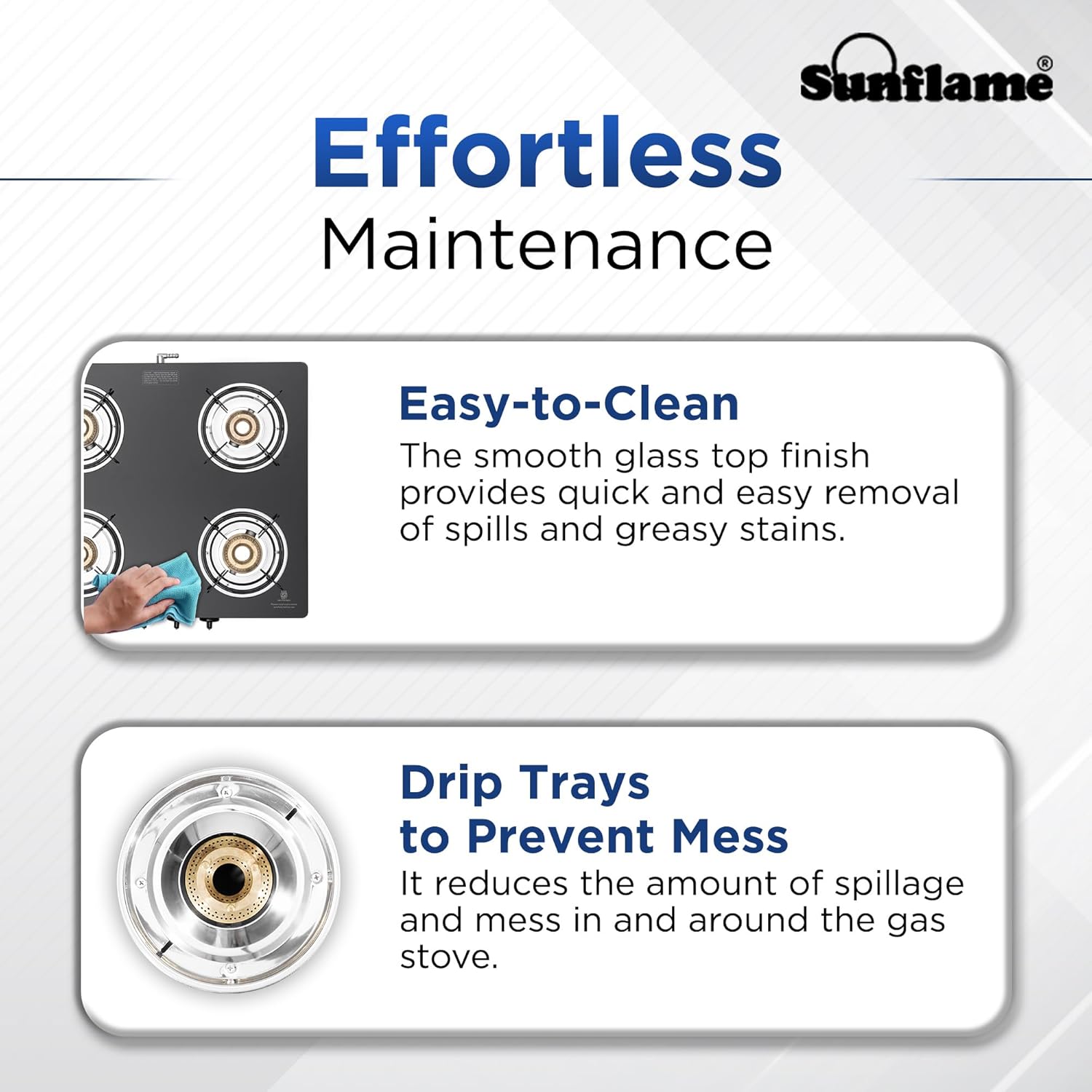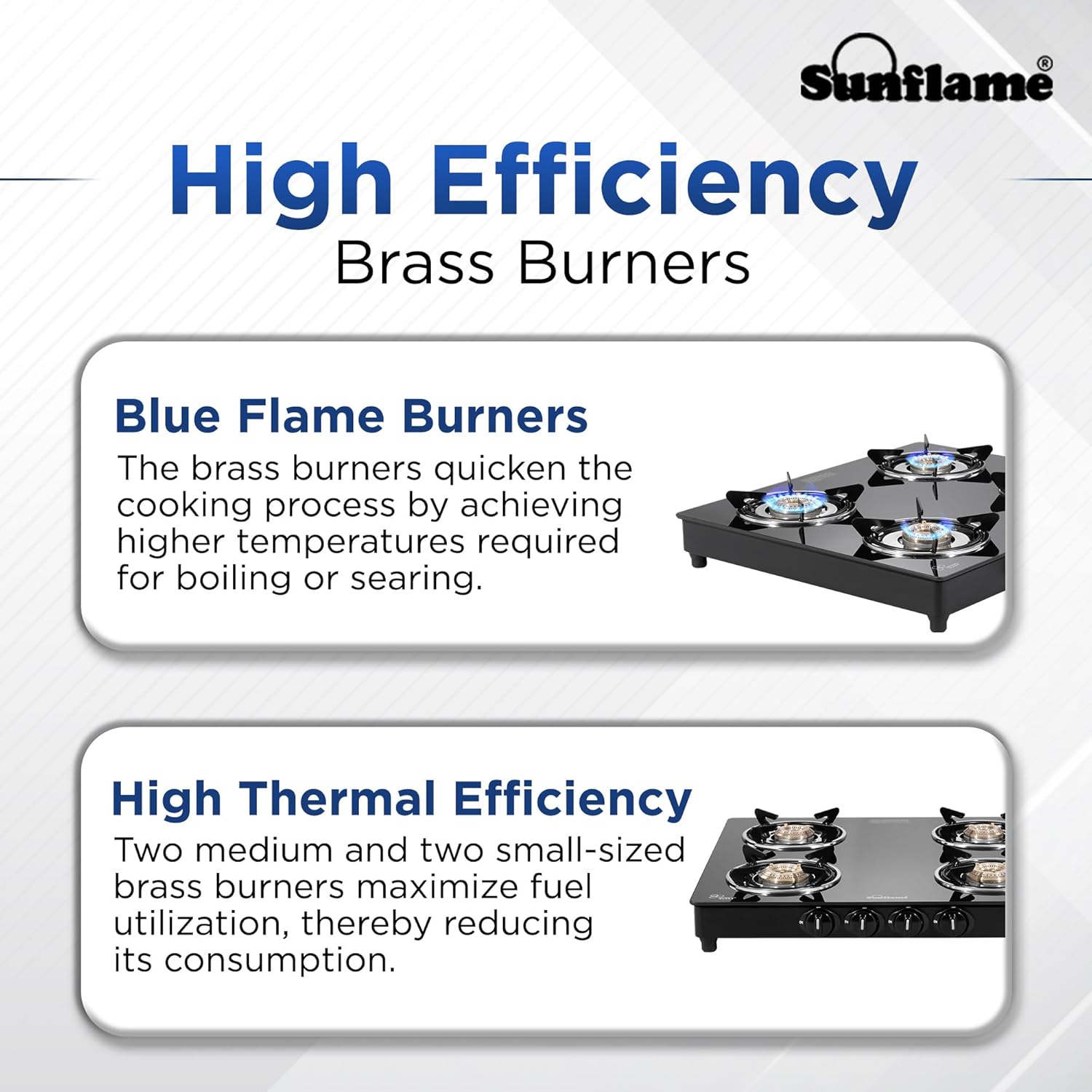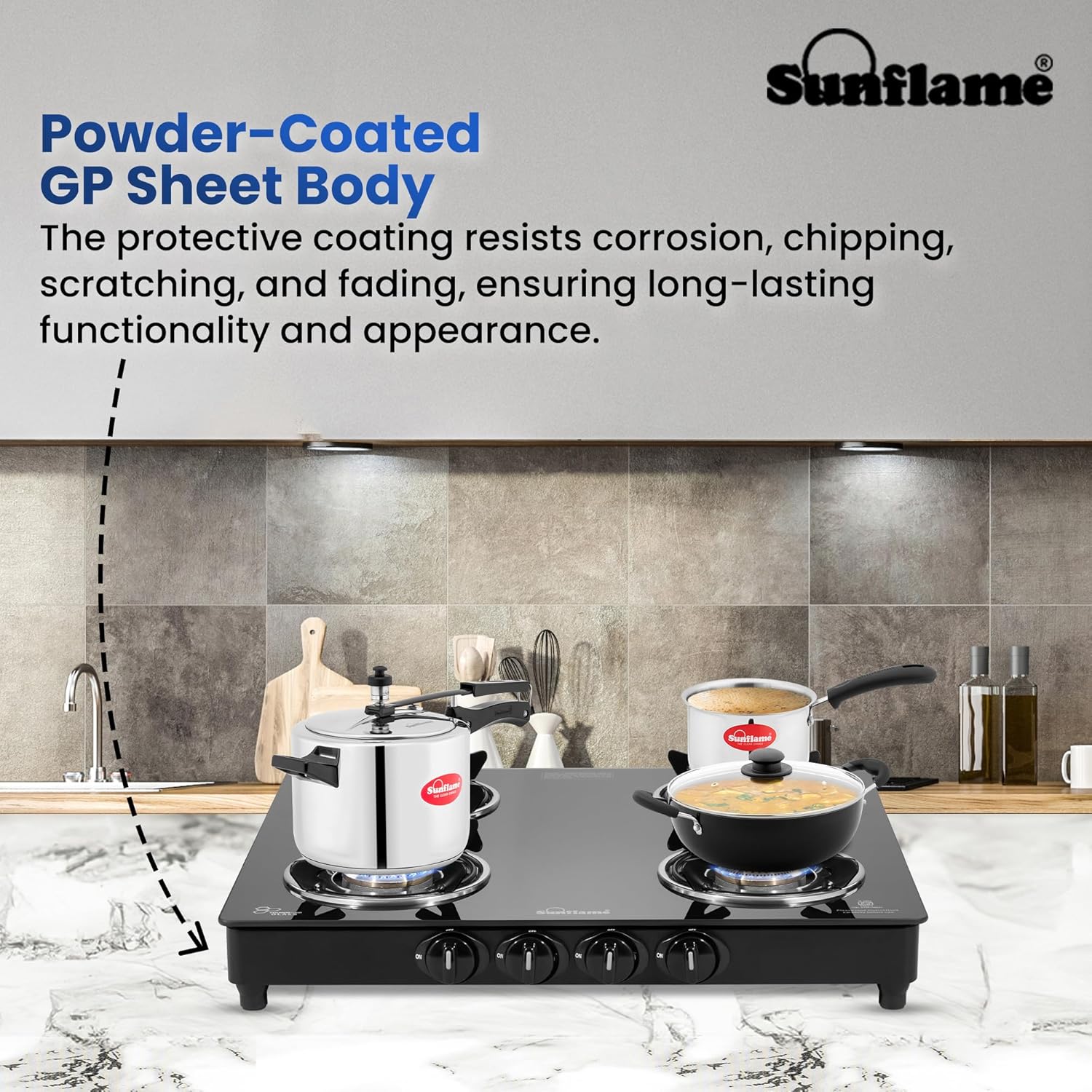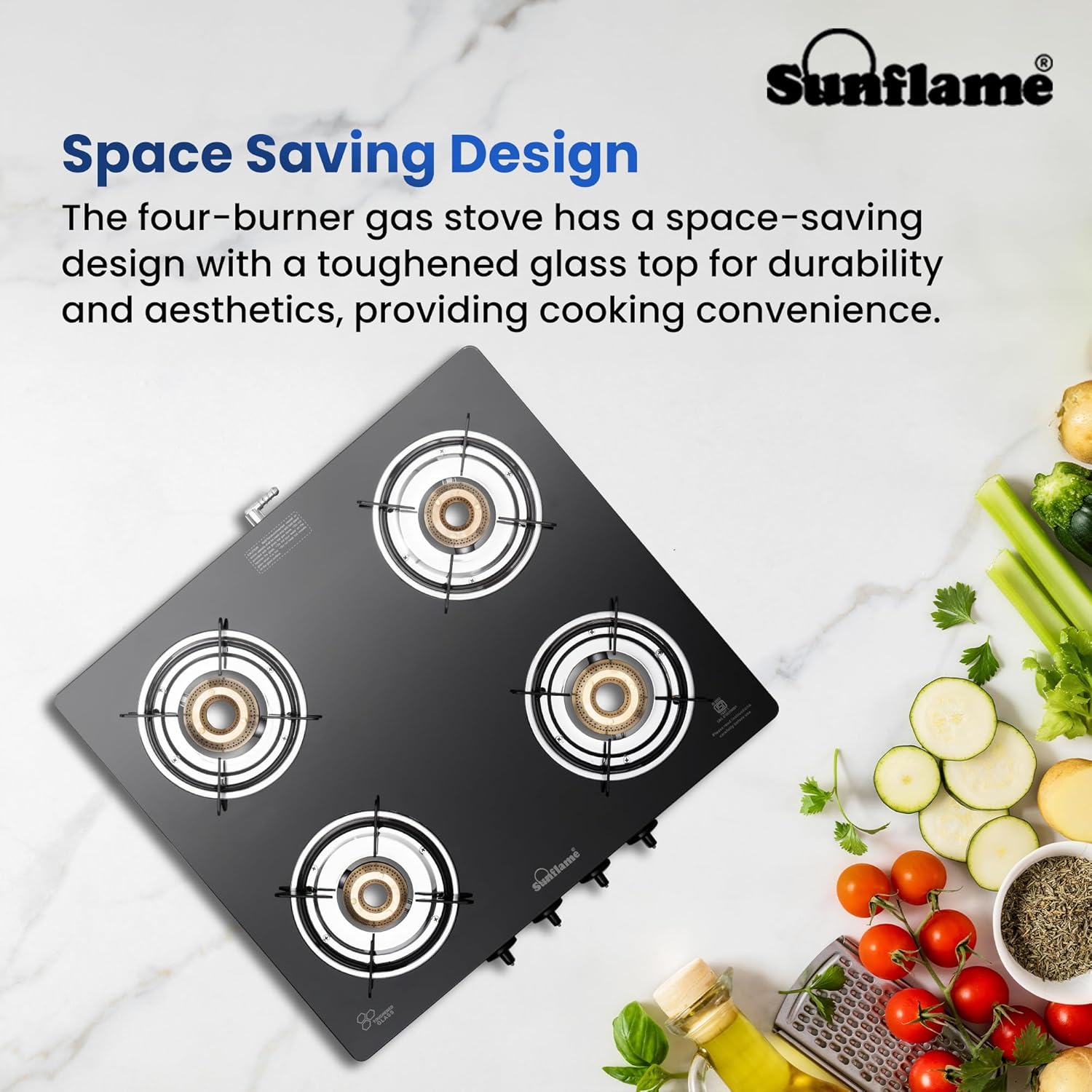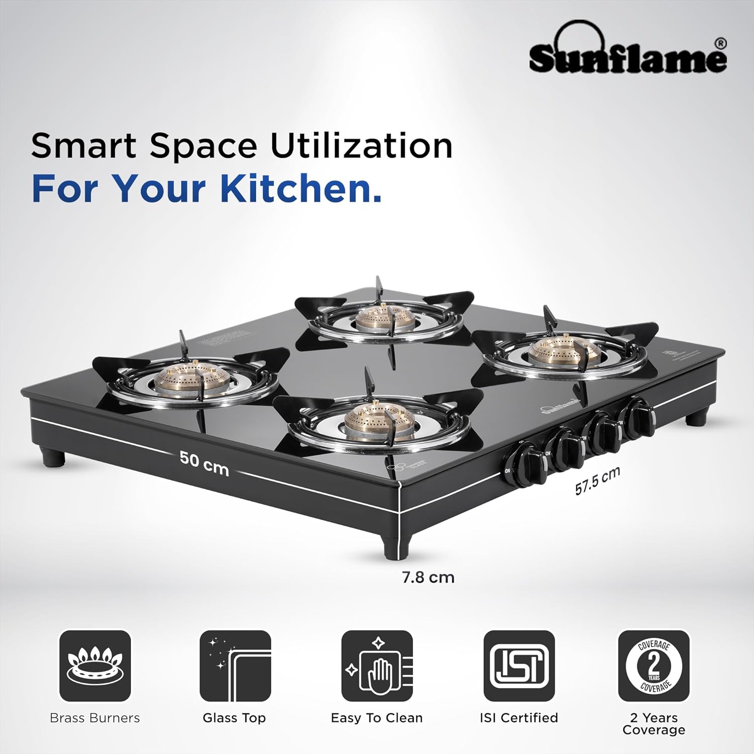 Sunflame Maleo 4 Burner Gas Stove | 2 Medium & 2 Small Brass Burners | 2 Year Product Coverage